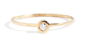 This ring is a minimalist's best friend. A tiny white diamond is set on a thin gold band- it's perfect for stacking or solo sparkling.